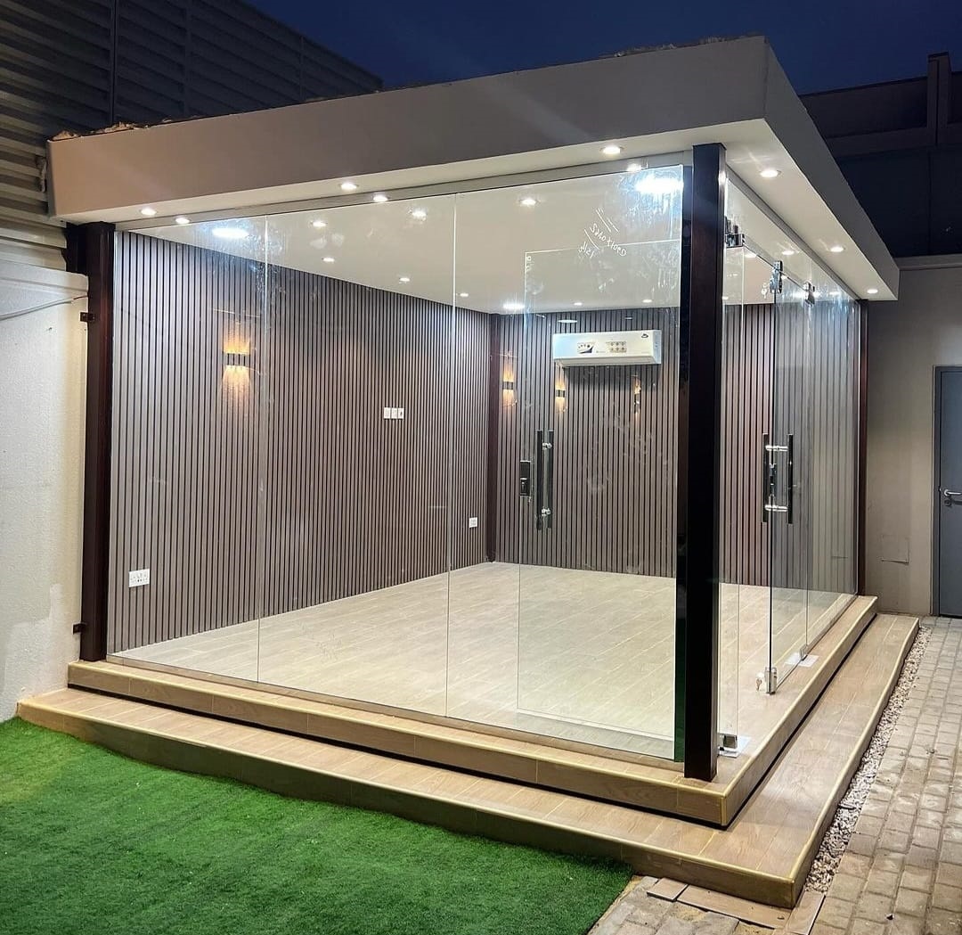 في حديقتي للديكورات نقدم خدمة تصميم وتنفيذ الغرف الزجاجية الخارجية بأعلى معايير الجودة والدقة في التشطيب.